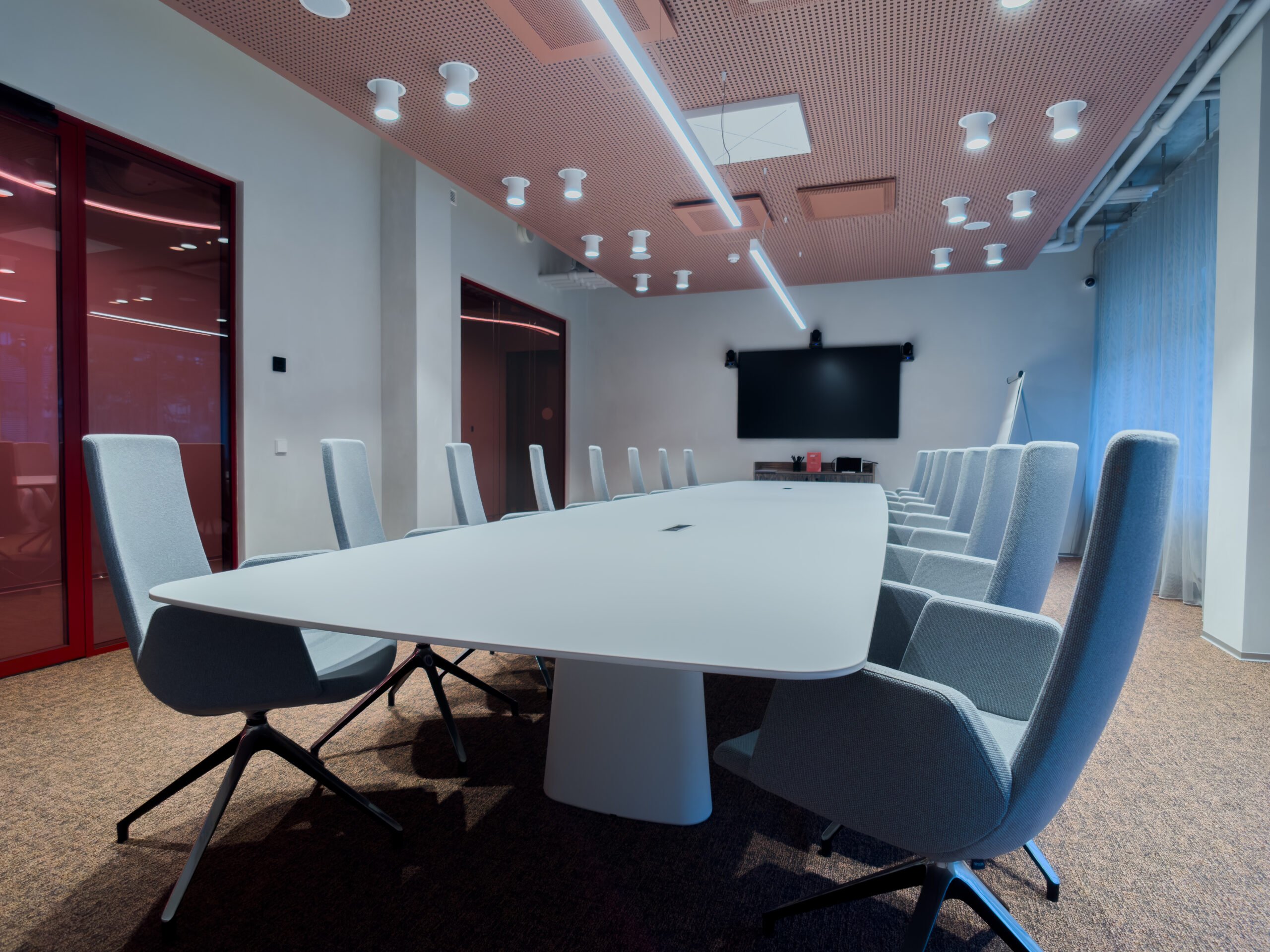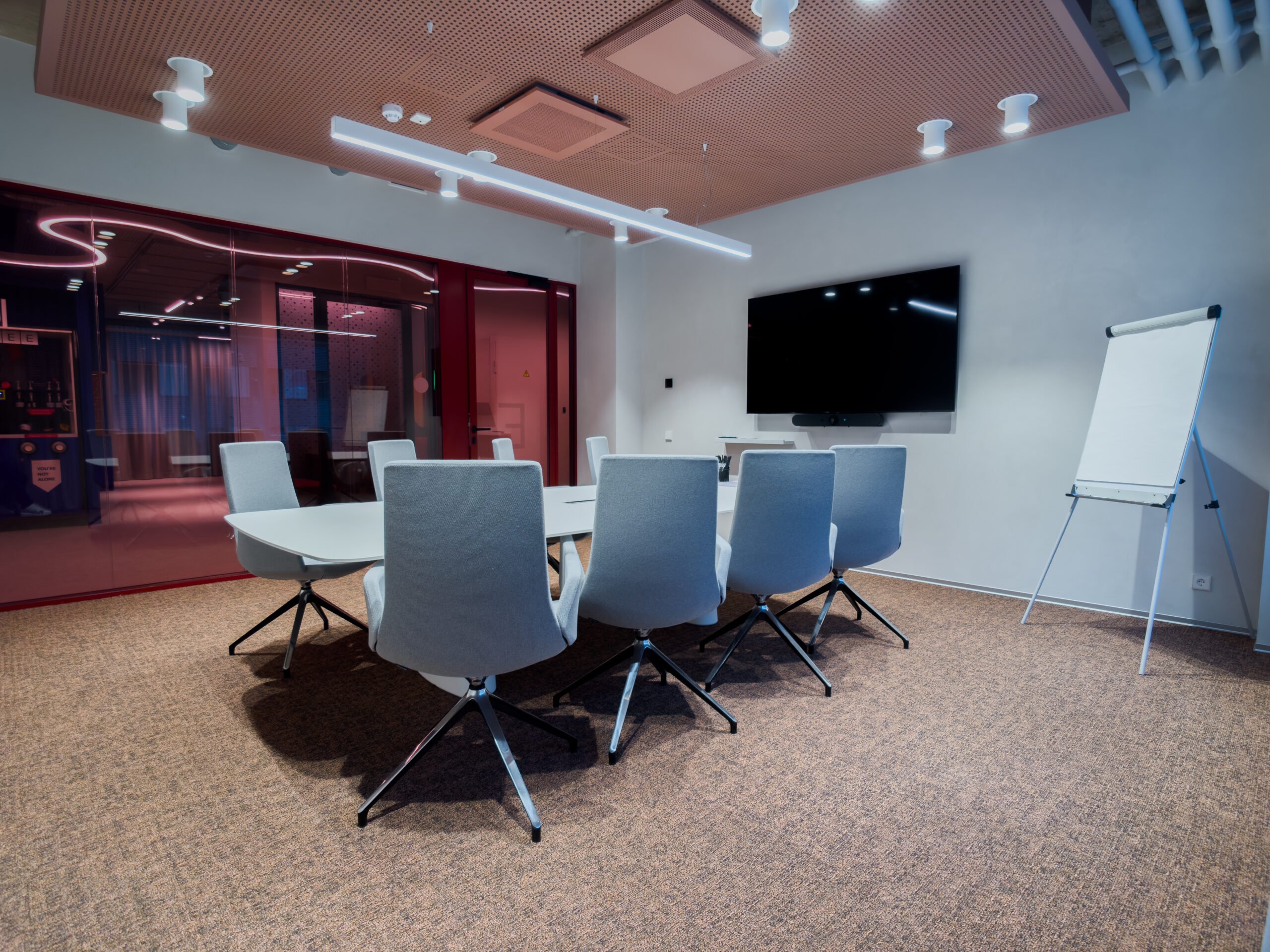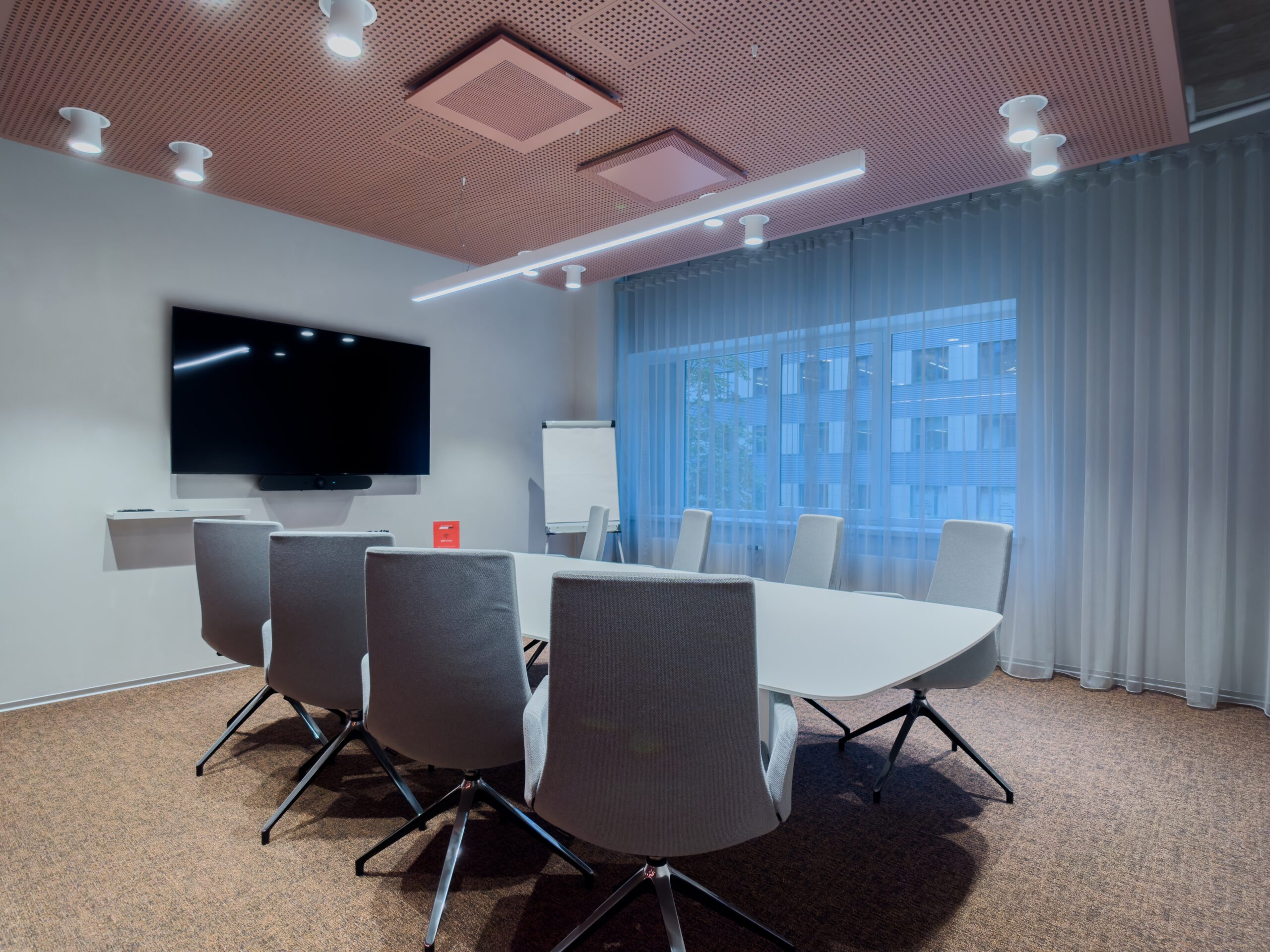 The meeting room provides a comfortable and functional environment for productive meetings, equipped with modern audiovisual equipment, climate control and lighting, creating optimal conditions for discussions, presentations and strategy planning.