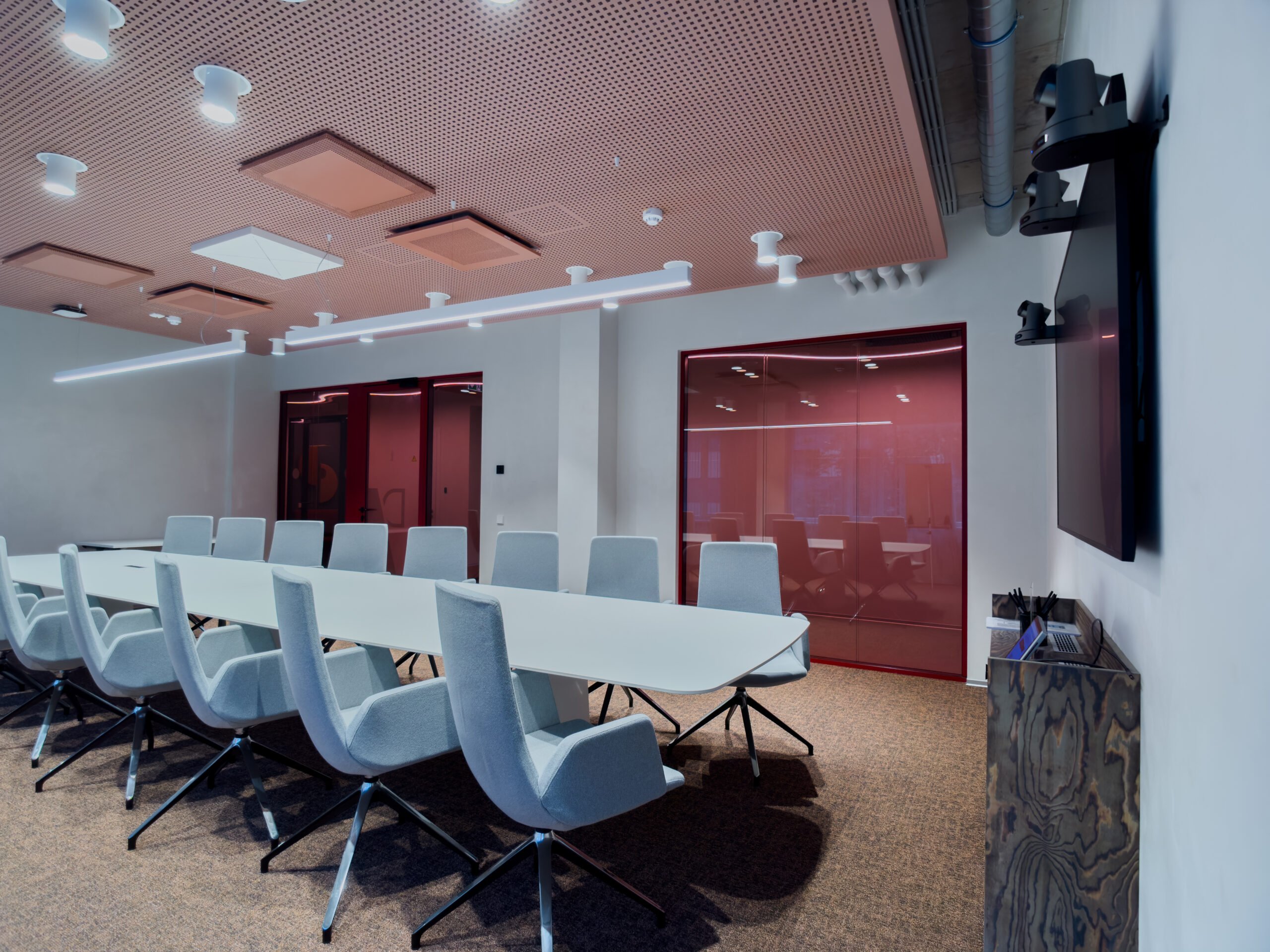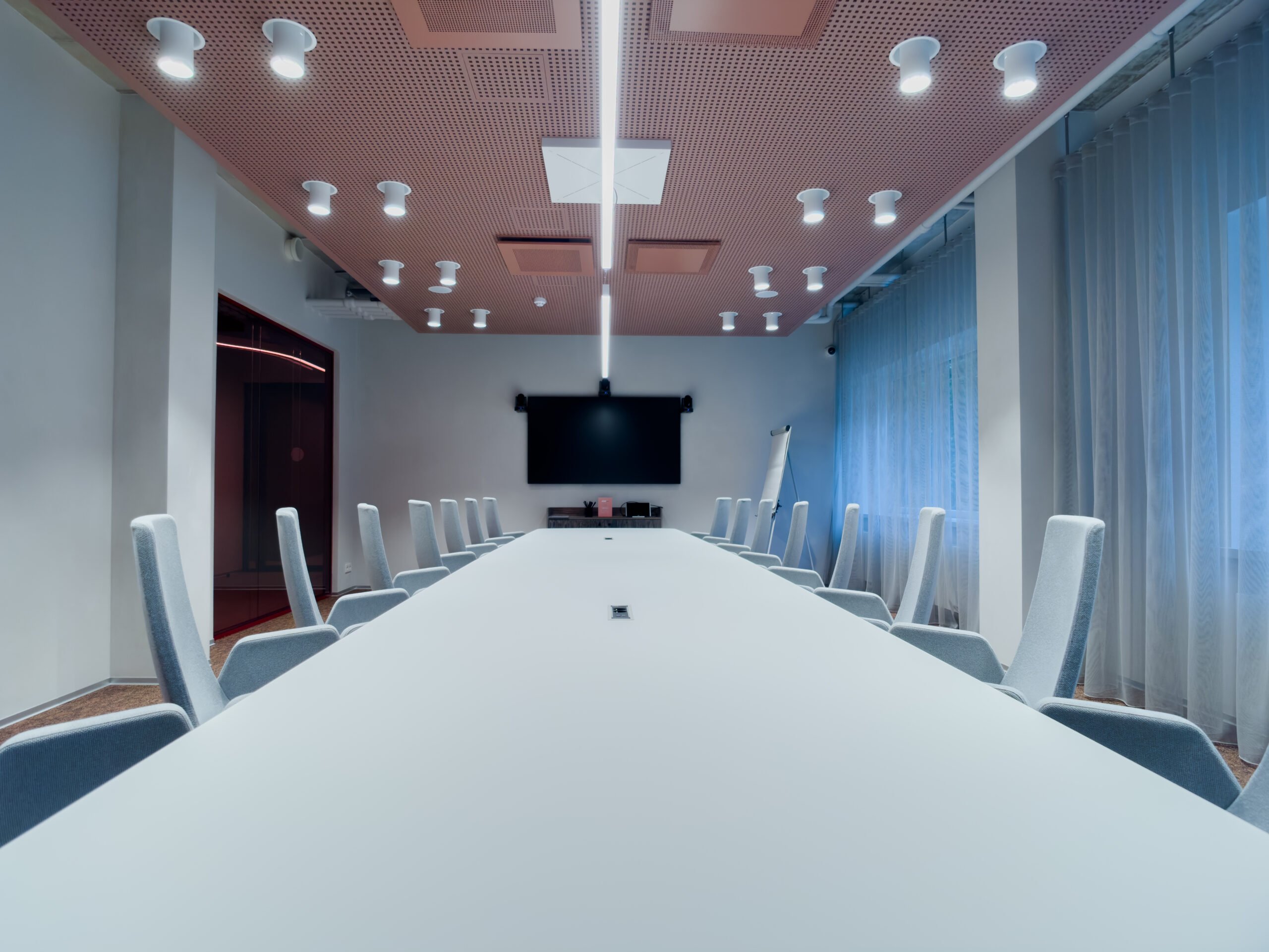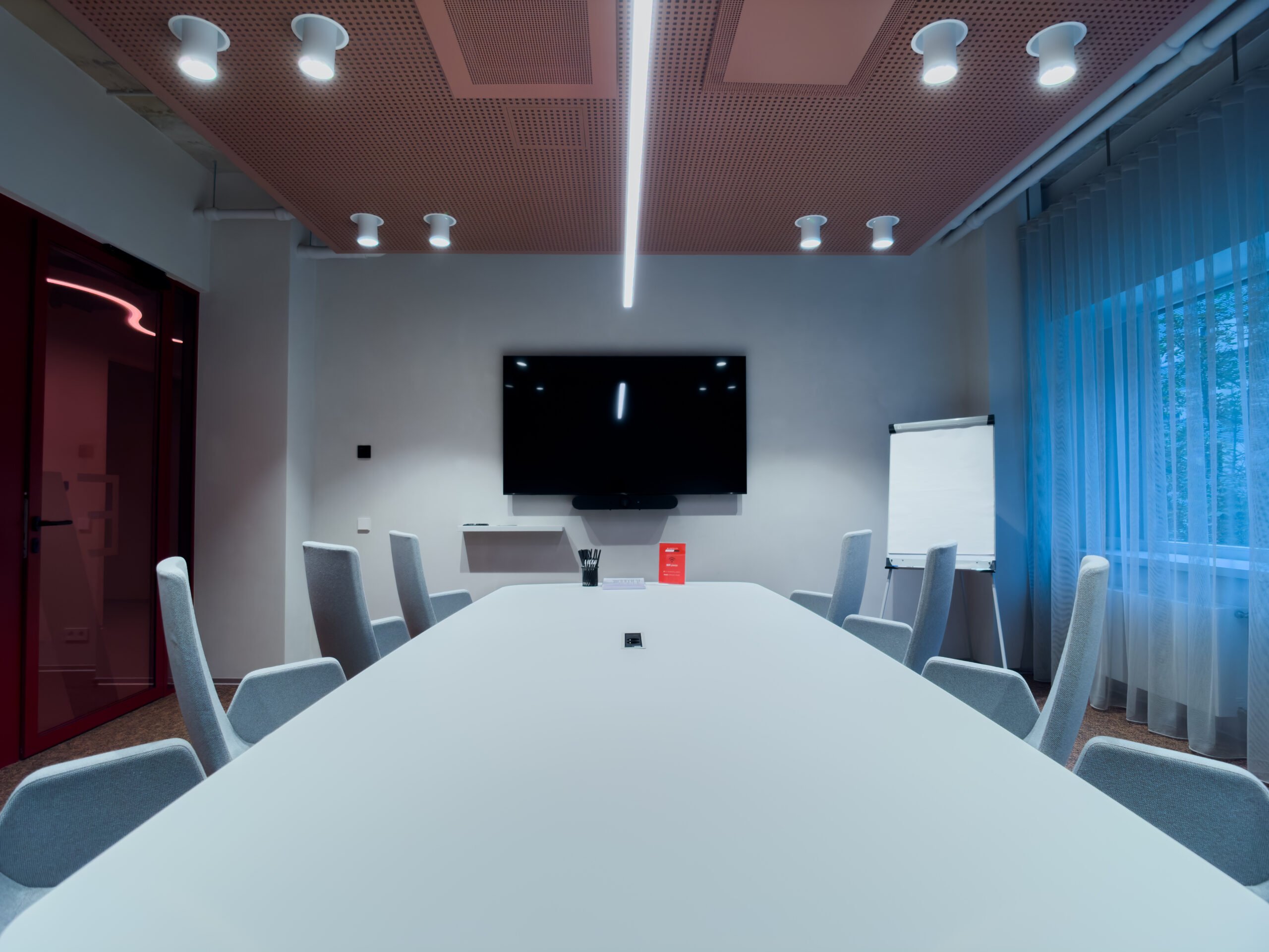 The meeting room provides a comfortable and functional environment for productive meetings, equipped with modern audiovisual equipment, climate control and lighting, creating optimal conditions for discussions, presentations and strategy planning.