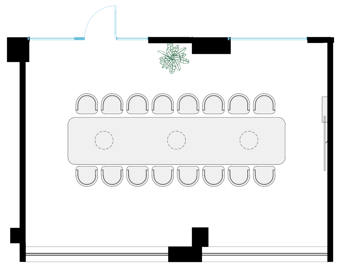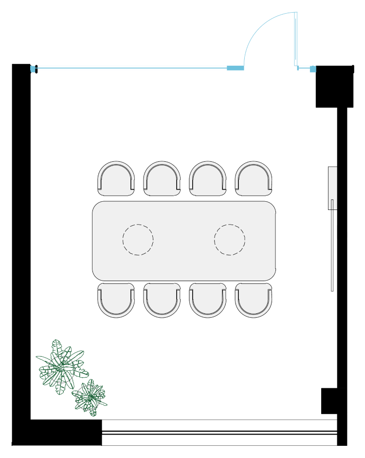 The meeting room offers a concentrated and functional environment for small meetings, equipped with state-of-the-art audiovisual equipment, a stable internet connection, climate control and lighting, providing comfortable conditions for productive work and successful discussions.